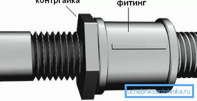 - Teräsliitin Voi olla kaksi tyyppiä: kierteitetty ja puristus. Ensimmäinen on paksu sylinteri, jossa on yksipuolinen kierre. Toinen koskee kumirenkaan ja korkki-mutterin käyttöä.