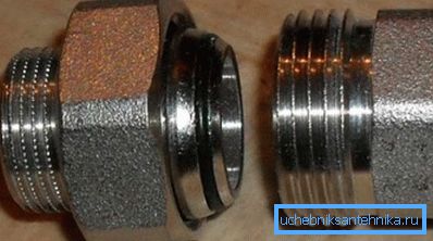 Se on paksu sylinteri, jossa on yksipuolinen kierre. Liitäntä tehdään mahdollisimman yksinkertaiseksi ja helpoksi: putket ruuvataan kierteellä molemmille puolille. Muista, että metallilanka antaa maksimaalisen tiivistysasteen.